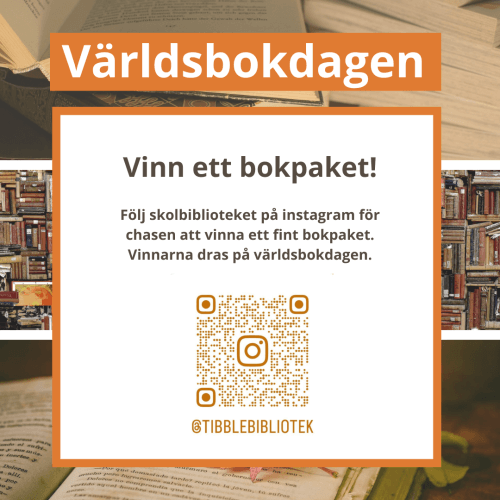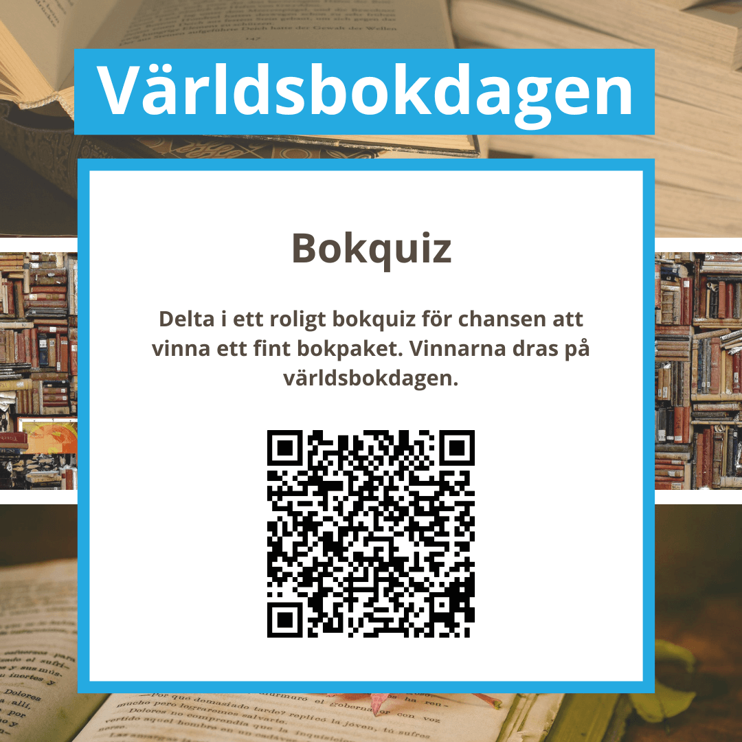 I samband med världsbokdagen har biblioteket två tävlingar där ni kan vara med och tävla om fina bokpaket! Följ biblioteket på Instagram och var med i utlottningen av ett bokpaket eller delta i ett bokquiz för att tävla om ett bokpaket.